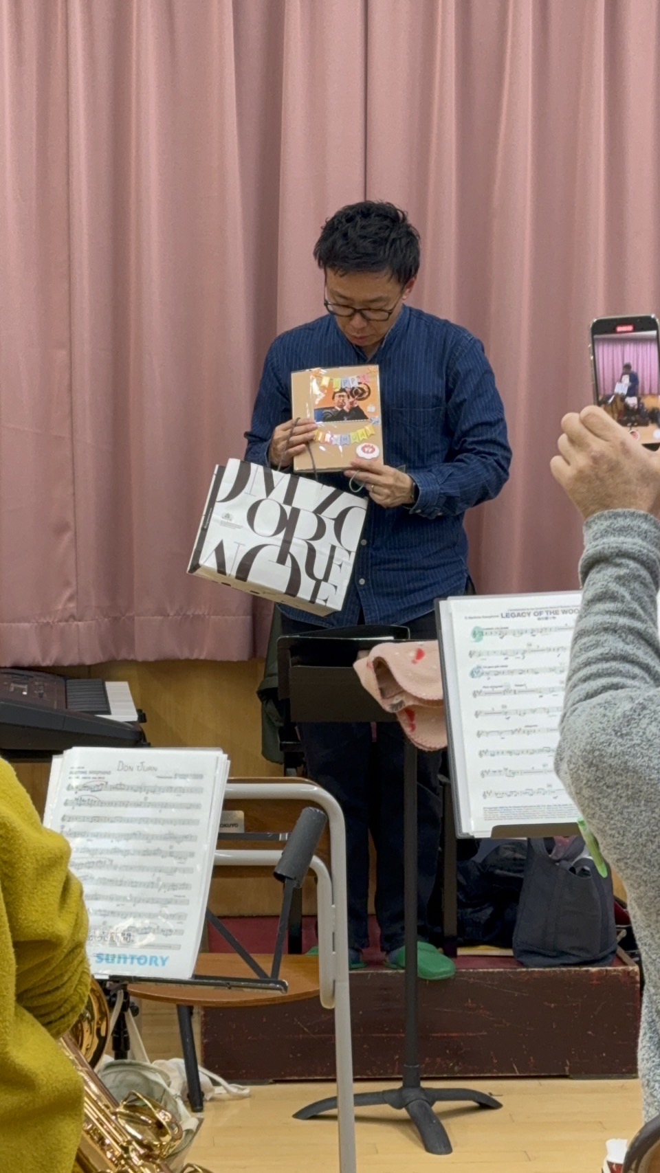 そして、11月16日は当団の指揮者である星野和音先生のお誕生日でしたので、今日の練習のおわりにサプライズプレゼント🎁